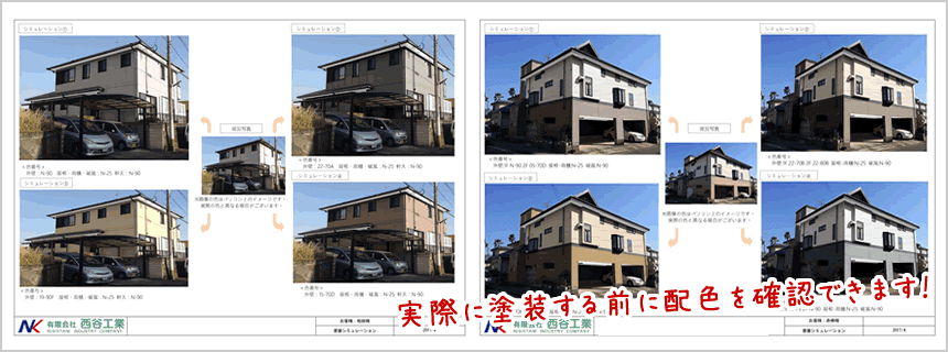 西谷工業では、失敗をなくすために、無料でカラーシミュレーションで作成した配色パターンを提出いたします。