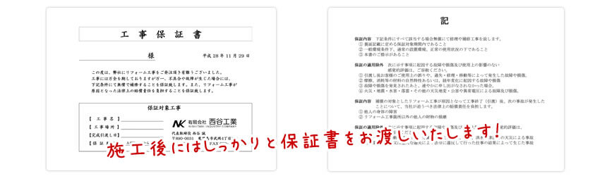 西谷工業では、このようなお客様にも安心していただけるように、作業開始から完了までの全工程の写真を整理して報告書を作成し、施工完了後にお渡しします。