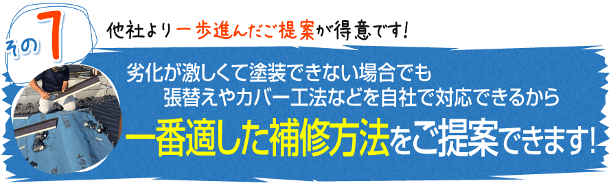 今となっては建物に対して、総合的に適切な補修をできるのが西谷工業の強みです。対応できないから…といってたらい回しにするようなことはありません。