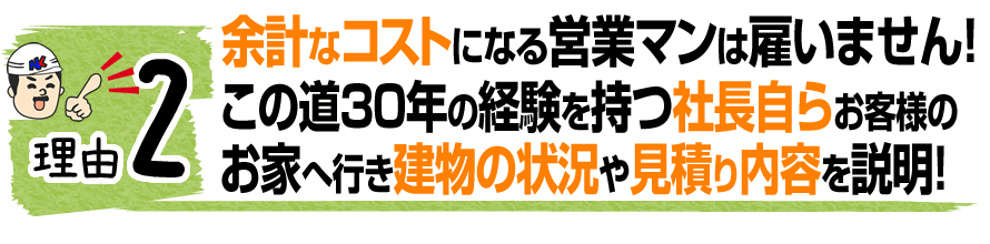 私は、外壁塗装でも劣化状況の診断こそ一番重要な作業だと考え、代表の私が責任を持って行います。これまで4,000棟以上のお家を見てきたので、どんな劣化状況でも正しい補修方法がわかります。