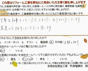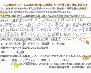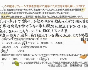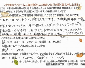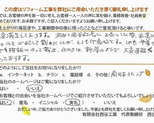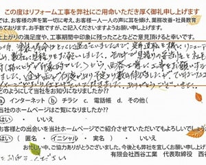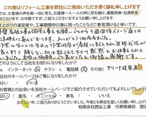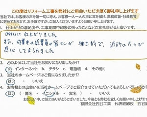また、外壁を綺麗にしたお客様から「今まで色々なリフォーム業者とやり取りしてきたけど、西谷さんの対応が一番良かったから内装もお願いしたい!」と言われることも多く、内装のリフォームにも対応できるようになりました。
